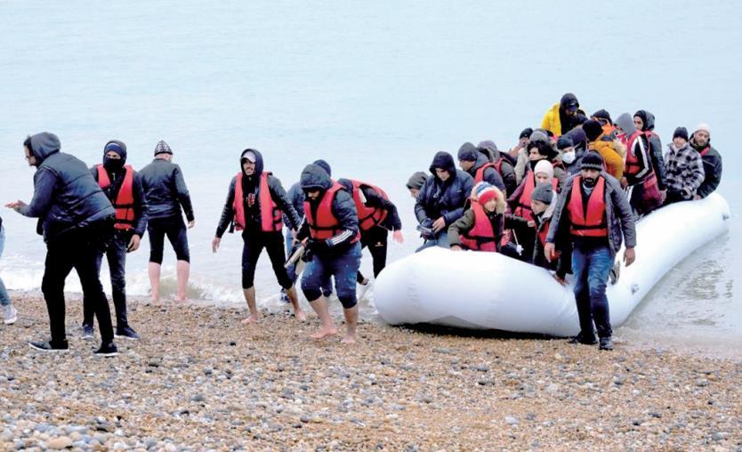 圖為一艘偷渡船抵達英國鄧杰內斯角海岸。新華社發(fā)