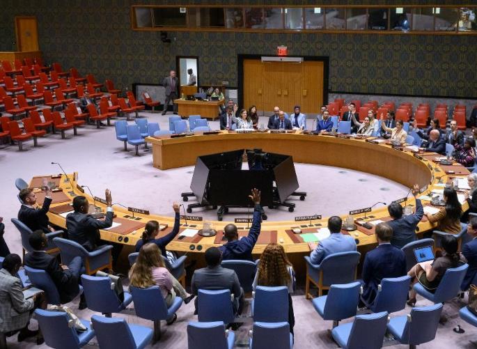 這是7月15日在位于紐約的聯(lián)合國總部拍攝的安理會投票表決現(xiàn)場。新華社發(fā)(聯(lián)合國供圖/洛伊·費利佩攝)