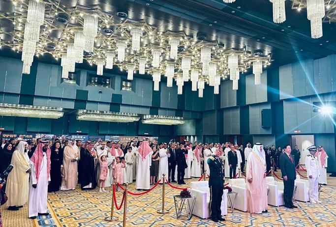 人民網(wǎng)迪拜7月24日電(記者任皓宇)7月24日,中國駐沙特大使館隆重舉行慶祝中國人民解放軍建軍98周年招待會。中國駐沙特大使常華,沙內(nèi)政部副大臣阿卜杜拉齊茲·阿亞夫親王、沙軍總參謀長顧問穆塔瓦少將、伊斯蘭軍事反恐聯(lián)盟副秘書長穆罕默德準(zhǔn)將等軍政高官,多國駐沙使節(jié)、武官,中資企業(yè)、華僑華人代表等約300人參加。