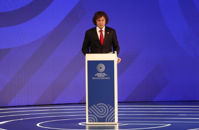 10月22日,格魯吉亞總理科巴希澤在首都第比利斯舉行的第五屆第比利斯絲綢之路國際論壇期間表示,共建“一帶一路”對格魯吉亞具有重要意義。在共建“一帶一路”框架下,格魯吉亞的互聯互通能力不斷增強,對華經貿合作持續(xù)擴大。新華社發(fā)(格魯吉亞政府供圖)