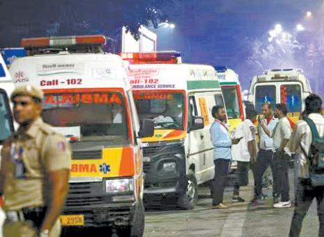 圖為11月10日,在印度新德里,救護(hù)車抵達(dá)汽車爆炸事發(fā)地點(diǎn)。 新華社發(fā)