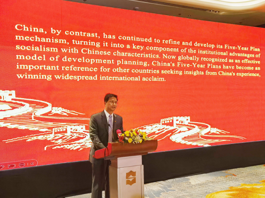 戚振宏表示,中國共產(chǎn)黨二十屆四中全會審議通過的“十五五”規(guī)劃建議,是中國今后五年經(jīng)濟(jì)社會發(fā)展的宏偉藍(lán)圖,也展示了中國與世界合作共贏的美好愿景??茖W(xué)制定和接續(xù)實(shí)施五年規(guī)劃,是中國共產(chǎn)黨治國理政一條重要經(jīng)驗(yàn),也是中國特色社會主義一個(gè)重要政治優(yōu)勢。中國五年規(guī)劃是被實(shí)踐證明了的成功發(fā)展規(guī)劃,成為世界各國借鑒中國經(jīng)驗(yàn)的重要方面,贏得廣泛國際贊譽(yù)。戚振宏介紹了中國“十四五”時(shí)期取得的重大成就及“十五五”規(guī)劃提出的未來五年中國經(jīng)濟(jì)社會發(fā)展七個(gè)主要目標(biāo),強(qiáng)調(diào)中國將以新發(fā)展為世界各國提供新機(jī)遇。戚振宏指出,與中國同行就是與機(jī)遇同行,相信中國就是相信明天,投資中國就是投資未來。中斯傳統(tǒng)友誼源遠(yuǎn)流長,兩國是發(fā)展振興的同路人、合作共贏的好伙伴。斯里蘭卡“繁榮國家、幸福生活”美好愿景以及“清潔蘭卡”“數(shù)字轉(zhuǎn)型”和“鄉(xiāng)村發(fā)展”三大規(guī)劃與中國“十五五”規(guī)劃中有關(guān)內(nèi)容高度契合,中方愿同斯方加強(qiáng)發(fā)展戰(zhàn)略對接,在高質(zhì)量共建“一帶一路”框架下,共同拓展港口經(jīng)濟(jì)、現(xiàn)代農(nóng)業(yè)、數(shù)字經(jīng)濟(jì)、綠色經(jīng)濟(jì)、旅游等合作,助力斯里蘭卡經(jīng)濟(jì)社會發(fā)展,為兩國人民創(chuàng)造更多福祉,攜手打造中斯命運(yùn)共同體。