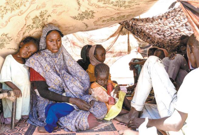 圖為在蘇丹北達(dá)爾富爾州塔維拉鎮(zhèn),流離失所者在一處用樹(shù)枝和布料搭建的簡(jiǎn)易帳篷下休息。 新華社發(fā)