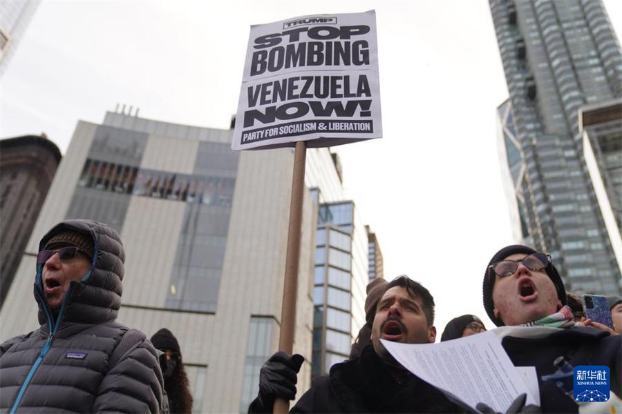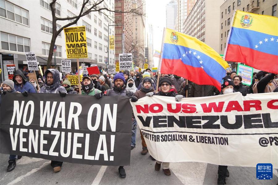 1月3日,近千名民眾在美國紐約舉行集會游行,抗議美國對委內(nèi)瑞拉實施軍事打擊。
