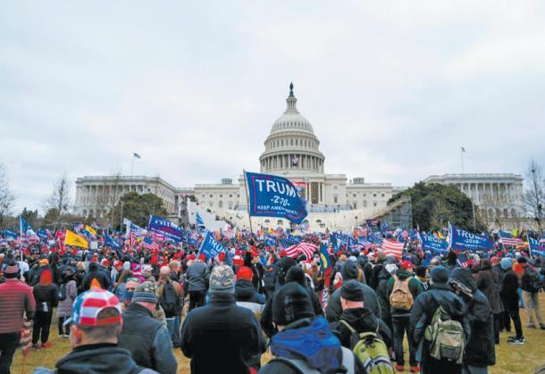 2021年1月6日,在美國首都華盛頓的國會(huì)大廈前,特朗普的支持者舉行示威游行。 新華社記者 劉杰攝
