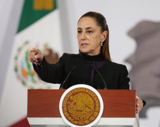 2月23日,在墨西哥首都墨西哥城,墨西哥總統(tǒng)辛鮑姆出席新聞發(fā)布會(huì)。新華社發(fā)(弗朗西斯科·卡涅多攝)