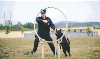 每一只警犬的成長都要經(jīng)歷一個口令達到120次左右的訓練,才能形成相對穩(wěn)定的條件反射。蘇亞偉先后訓練了5只警犬,對坐、臥、立、吠叫、延緩等口令,要不厭其煩地重復一兩百次,成了他的訓犬日常。