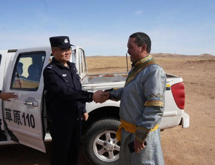 走在隊(duì)伍最前面那位移民管理警察,身材魁梧、面龐黝黑,他就是甘其毛都邊境派出所所長(zhǎng)黃健。從警21年來(lái),他始終扎根邊境一線(xiàn),累計(jì)走訪(fǎng)群眾3萬(wàn)余人次,辦理各類(lèi)案件1500余起,為人民群眾挽回經(jīng)濟(jì)損失120余萬(wàn)元,被牧民們親切地稱(chēng)為“賽音查戈達(dá)”(蒙古語(yǔ)意為好警察)。該所承擔(dān)著960余平方公里邊境轄區(qū)、11余公里國(guó)境線(xiàn)的邊境管控和治安管理任務(wù)。