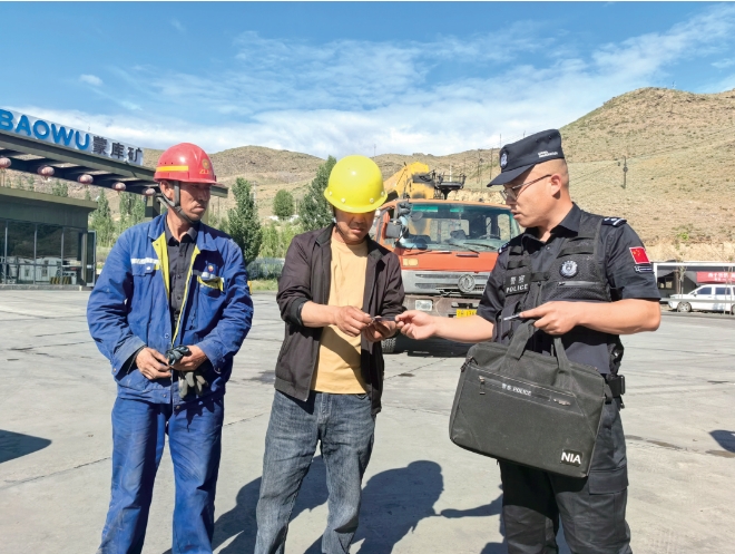 “通過定期組織企業(yè)危爆物品管理和安防等重點崗位人員的定期培訓,建立護廠隊,加強企業(yè)生產(chǎn)關鍵環(huán)節(jié)和流動人口的監(jiān)管力度,通過每日企業(yè)上報數(shù)據(jù)和民警實地走訪采集,實現(xiàn)警務室和企業(yè)數(shù)據(jù)的‘雙核準、雙同步’,確保企業(yè)生產(chǎn)和人員管理安全。”由于蒙庫礦區(qū)面積大、危爆物品使用量多、轄區(qū)人員流動頻繁,于磊和警務室民警在日常工作中也總結(jié)形成了一套特色工作機制。