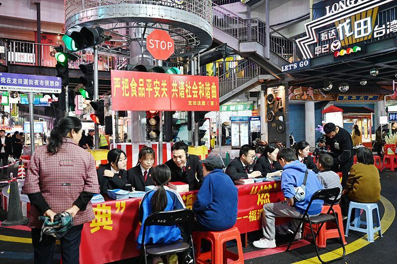 龍?zhí)锓ㄍミ€創(chuàng)新“法治夜市”模式,將客流量較大的周六定為“夜市審判日”,通過就地收案、巡回審判,集中公開審理夜市糾紛案件,促成糾紛高效就地化解,生動演繹“身邊的今日說法”,護(hù)航夜市經(jīng)濟(jì)健康有序發(fā)展。