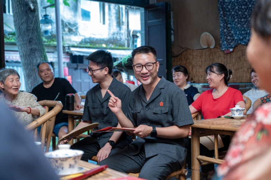 近日,重慶市九龍坡區(qū)人民法院白市驛人民法庭“曲藝楓橋”品牌團(tuán)隊來到走馬古鎮(zhèn),攜手走馬故事非遺代表性傳承人劉倫以講述法治故事的方式,為群眾普及婚姻家庭、贍養(yǎng)繼承等與生活息息相關(guān)的法律知識。法官與藝人以生動有趣的案例故事為載體,用通俗易懂的語言以案釋法,讓群眾在輕松品茶的過程中學(xué)習(xí)法律知識,營造尊法學(xué)法守法用法的濃厚氛圍。