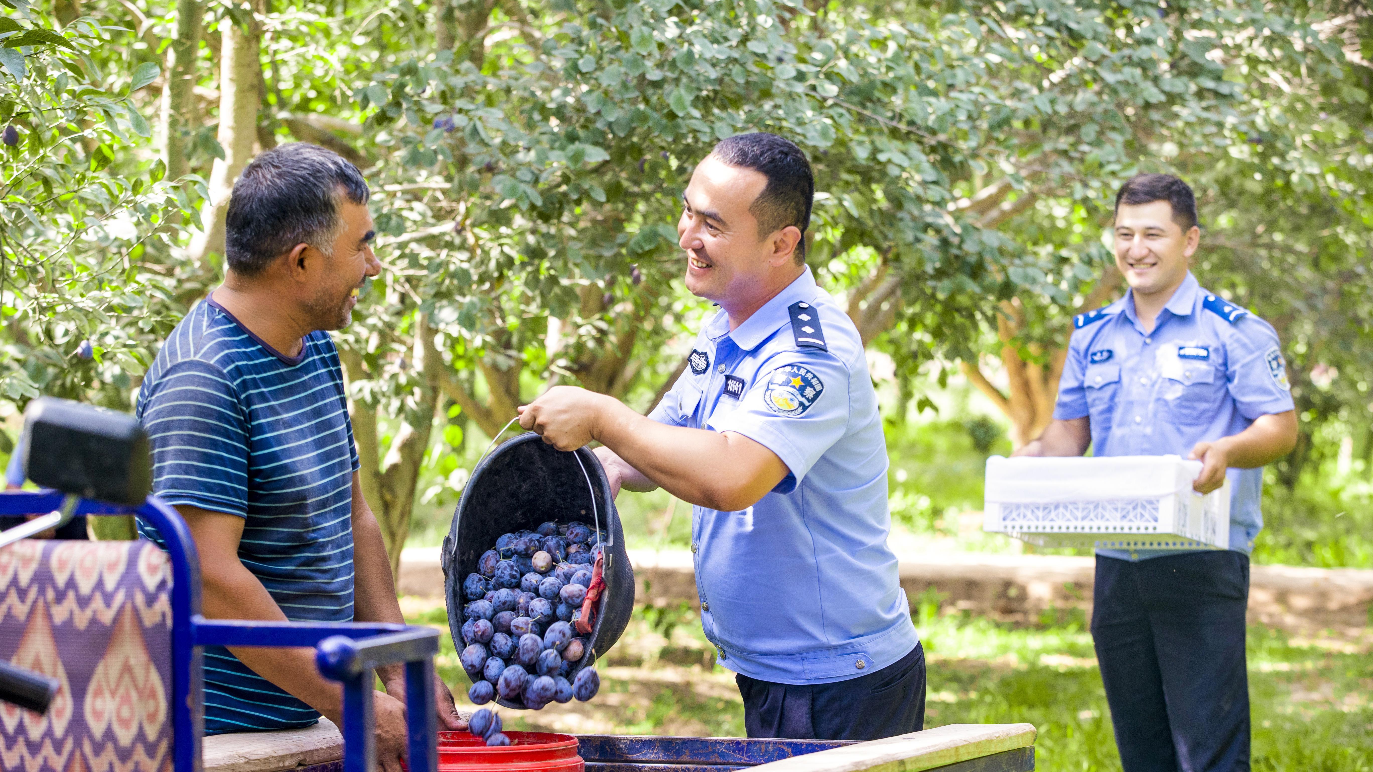 今年,吐?tīng)栠d種植的新梅個(gè)頭勻稱(chēng)、甜度達(dá)標(biāo),收購(gòu)商們搶著要。吐?tīng)栠d高興地見(jiàn)人就說(shuō):“多虧了民警,不然哪有這么好的收成!”