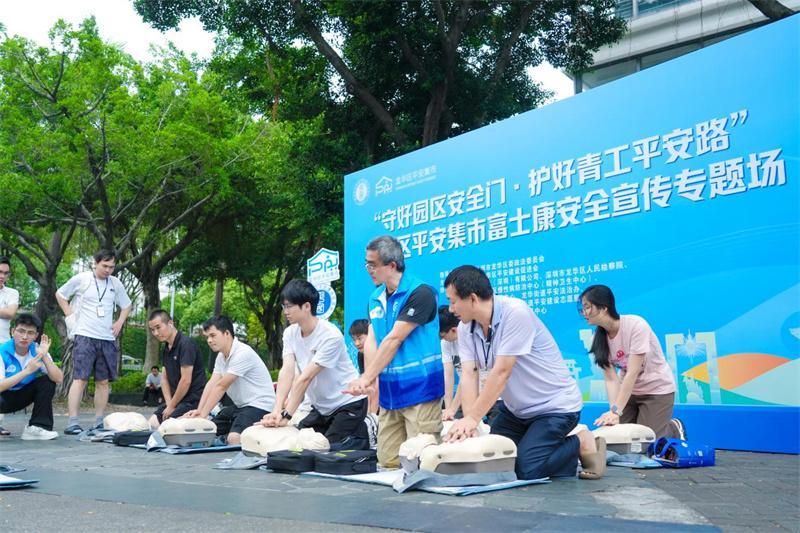 活動現(xiàn)場,四大特色互動環(huán)節(jié)快速點燃現(xiàn)場氛圍。龍華區(qū)檢察院工作人員以趣味問答形式帶領(lǐng)青工深入探索法律知識;油松派出所民警結(jié)合真實案例,細(xì)致拆解電信詐騙的慣用手段與防范技巧;“心理減壓踩氣球”環(huán)節(jié)中,青工們在歡聲笑語里釋放工作壓力;深圳市小黃人應(yīng)急救護(hù)發(fā)展中心的專業(yè)講師則通過實操演示,手把手教學(xué)心肺復(fù)蘇、AED使用等急救技能,讓應(yīng)急處置知識變得通俗易懂、易學(xué)易用。