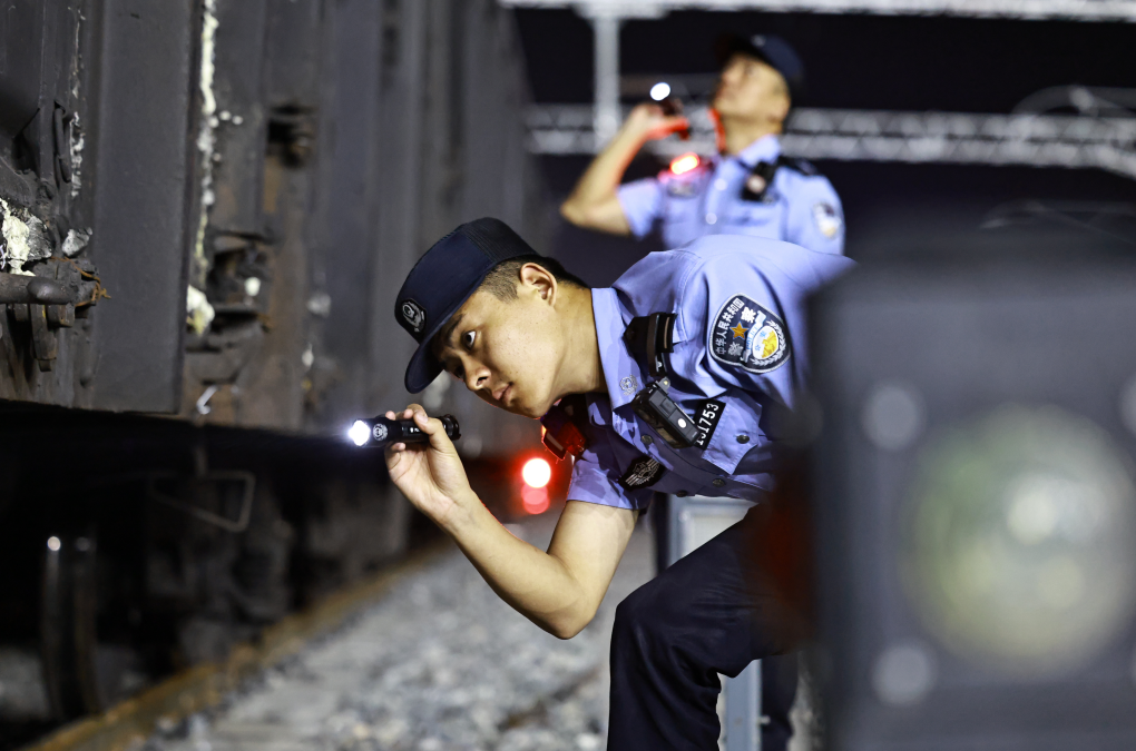 隨著轄區(qū)鐵路部門運(yùn)輸煤炭礦石的貨運(yùn)列車頻次增多,烏魯木齊鐵路公安局庫爾勒公安處若羌站派出所民警加強(qiáng)對站內(nèi)停靠貨運(yùn)列車的夜間巡視,全力保障疆煤外運(yùn)列車運(yùn)行平穩(wěn)有序。