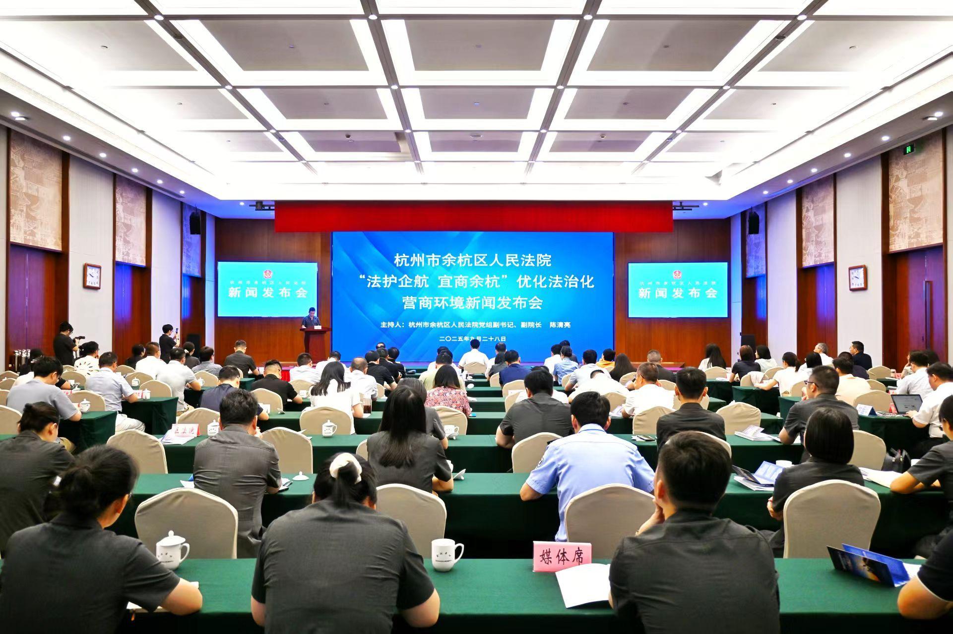 2025年9月28日,浙江省杭州市余杭區(qū)人民法院召開(kāi)“法護(hù)企航,宜商余杭”優(yōu)化法治化營(yíng)商環(huán)境新聞發(fā)布會(huì)。作為“浙江經(jīng)濟(jì)第一區(qū)”法院,余杭區(qū)人民法院連續(xù)兩年部署開(kāi)展“抓源促治 法護(hù)營(yíng)商”主題年,以“余法護(hù)企領(lǐng)跑行動(dòng)”為抓手統(tǒng)籌全院重點(diǎn)工作,為轄區(qū)市場(chǎng)主體創(chuàng)造既充滿活力又安定有序的法治環(huán)境,為余杭“我負(fù)責(zé)陽(yáng)光雨露,你負(fù)責(zé)茁壯成長(zhǎng)”營(yíng)商環(huán)境金名片提亮法治底色。