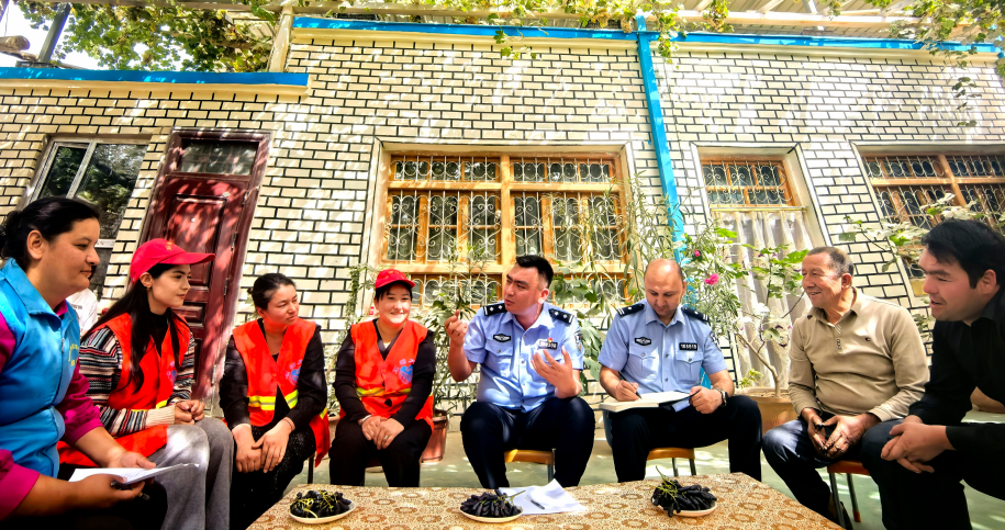 “石榴大媽”志愿服務隊由全國“楓橋式公安派出所”、葉城縣公安局伯西熱克派出所組建,900余名志愿者奔走于全鎮(zhèn)19個村,走出一條在“家門口”排憂解難的新路子。