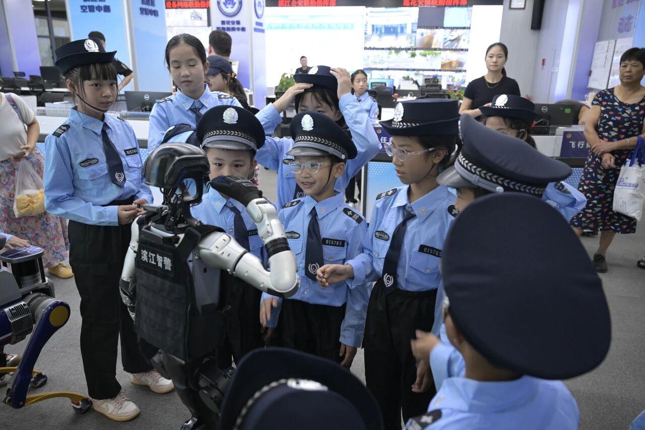 “這個(gè)無(wú)人機(jī)機(jī)巢好酷!我能和它合影嗎?”10月18日,在浙江省杭州市公安局濱江區(qū)分局巡特警大隊(duì)營(yíng)區(qū)內(nèi),9歲的學(xué)生小王興奮地拉著特警隊(duì)員的衣角問(wèn)道。當(dāng)天,由杭州市公安局濱江區(qū)分局與濱江團(tuán)區(qū)委共同策劃的第二期“濱江智警少年團(tuán)”正式開營(yíng),通過(guò)社會(huì)公開征集的30名來(lái)自濱江區(qū)“家門口青少年宮”的孩子們,走進(jìn)這個(gè)充滿神秘色彩的地方,開啟了一場(chǎng)別開生面的警營(yíng)體驗(yàn)之旅。