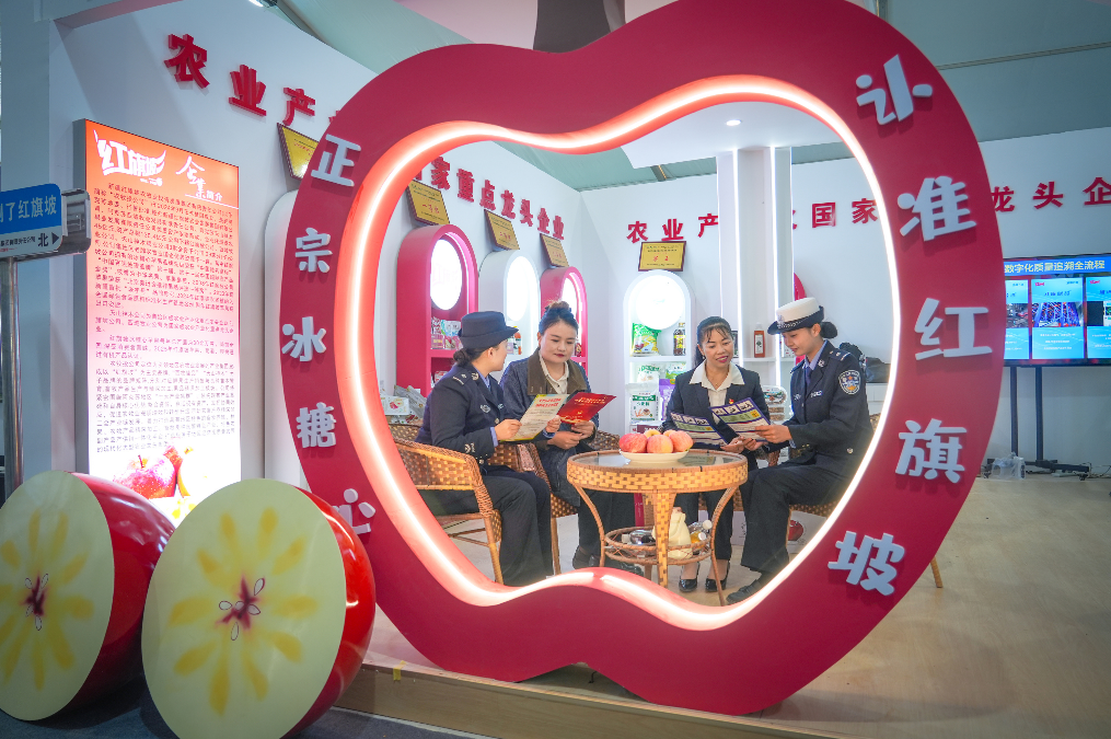 金秋時節(jié),第十一屆新疆特色果品(阿克蘇)交易會迎來八方賓客。阿克蘇市公安局依托地面巡邏等“人力+技防”相結合的立體化防控模式,織密安全網(wǎng)絡,開展安保工作。同時,警方將普法宣傳與溫情服務相結合,設置普法驛站與警“茶”小店聯(lián)動服務點,通過發(fā)放宣傳頁、展示仿真毒品、講解反詐與交通安全知識等方式,讓法治宣傳更接地氣。