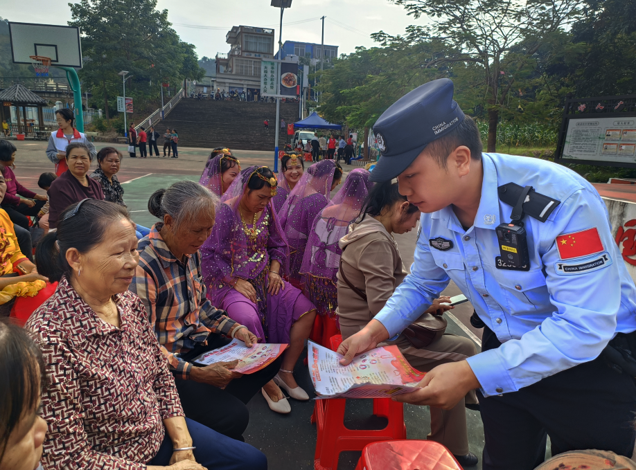 當(dāng)天9時,國門廣場成為普法宣傳的“前沿陣地”。民警聚焦群眾最關(guān)心的法律需求,圍繞防范電信網(wǎng)絡(luò)詐騙、邊境法律法規(guī)等內(nèi)容,開展針對性普法宣傳?;顒又?,民警通過發(fā)放定制化宣傳手冊、剖析真實詐騙案例、現(xiàn)場答疑解惑等方式,將法律知識轉(zhuǎn)化為群眾聽得懂、用得上的“護身指南”。針對老年人群體易受侵害的“痛點”,民警重點講解“虛假投資”“保健品詐騙”“冒充親屬借錢”等常見騙局的作案手法與識別技巧,反復(fù)叮囑老年人“不輕信、不透露、不轉(zhuǎn)賬”,手把手教大家守護好“養(yǎng)老錢”。