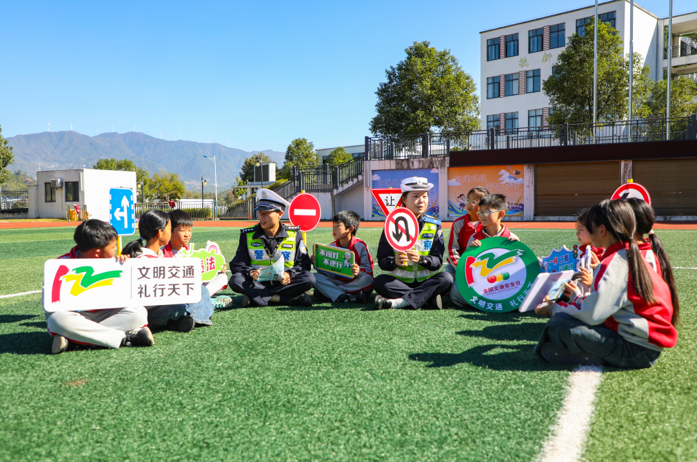 圖為11月17日,民輔警走進(jìn)葛源鎮(zhèn)青苗小學(xué)開展交通安全宣傳活動。