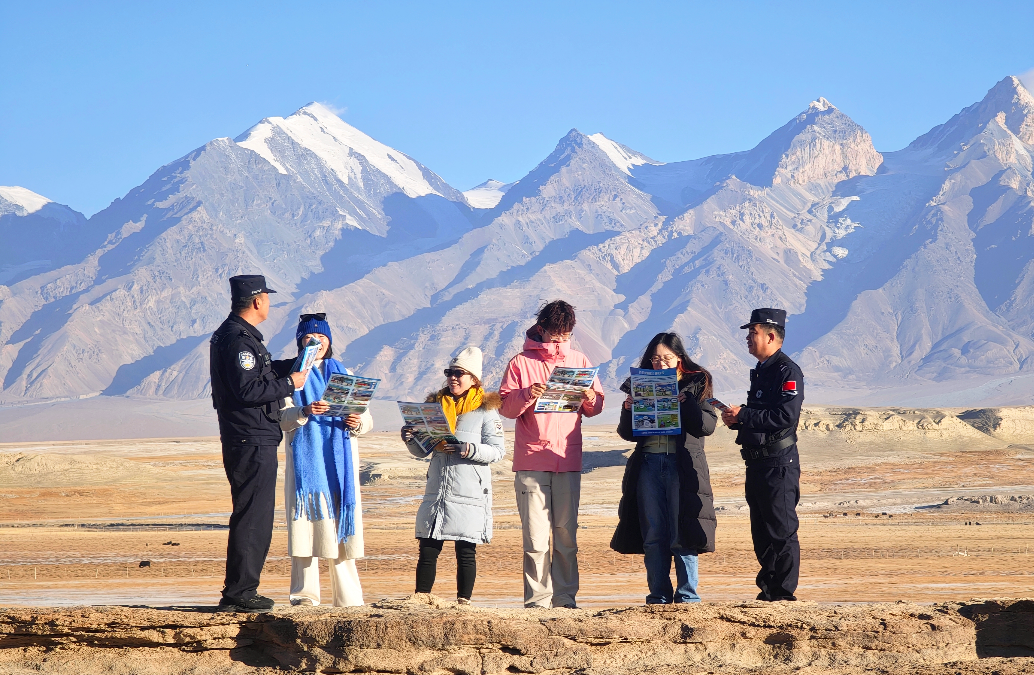 11月18日,新疆木吉邊境派出所民警深入轄區(qū)旅游景點“火山口景區(qū)”內(nèi)開展巡邏走訪、服務(wù)群眾等工作。其間,民警向游客介紹景區(qū)特色和注意事項,并通過發(fā)放宣傳手冊等形式向游客介紹關(guān)于陸地邊界的法律法規(guī)、防范電信網(wǎng)絡(luò)詐騙等知識,進一步提高游客在邊境游玩時的防范意識,全面護航景區(qū)平安,助力駐地旅游經(jīng)濟發(fā)展。