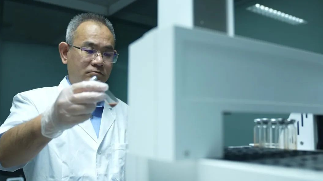 圖為張雷在實(shí)驗(yàn)室進(jìn)行血液分析鑒定。