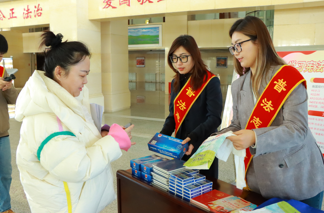 在第十二個(gè)“國家憲法日”來臨之際,內(nèi)蒙古自治區(qū)呼倫貝爾市司法局普法志愿者帶著滿滿的“法治干貨”,共赴一場(chǎng)“憲法之約”。普法志愿者在河西新區(qū)政務(wù)綜合樓機(jī)關(guān)二樓南門搭建普法宣傳展臺(tái)。現(xiàn)場(chǎng)擺放著憲法主題宣傳展板,普法志愿者以通俗易懂的語言,結(jié)合展板內(nèi)容向往來的機(jī)關(guān)干部職工講解憲法的發(fā)展歷程、憲法的作用、憲法保障公民的基本權(quán)利等內(nèi)容,帶來“零距離”的普法服務(wù),有效增強(qiáng)了國家工作人員的法治觀念和法律意識(shí)。