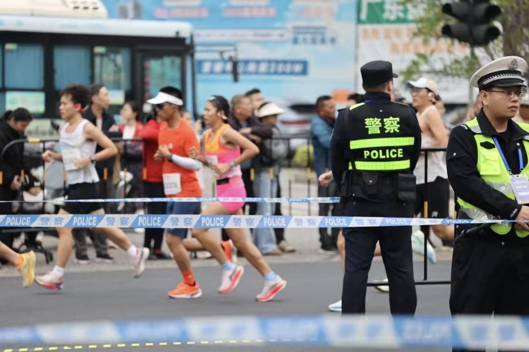 賽事過程中,民警們時(shí)刻關(guān)注選手狀態(tài),對突發(fā)抽筋、暈倒等情況的參賽選手第一時(shí)間實(shí)施緊急救助,以“溫情藍(lán)”守護(hù)每一位跑者的安全。