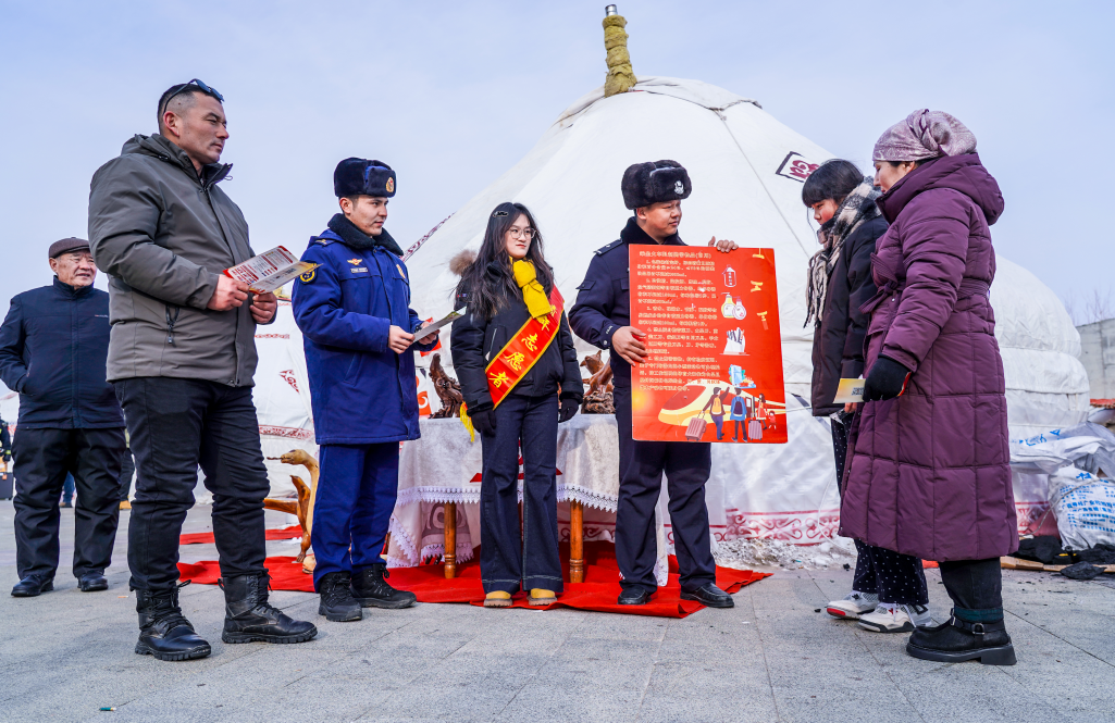 1月24日至25日,以“福潤烏倫古 情滿阿勒泰”為主題的第十九屆烏倫古湖冬捕文化旅游節(jié)在新疆阿勒泰地區(qū)福??h烏倫古湖景區(qū)舉行。烏魯木齊鐵路公安局奎屯公安處福海站派出所民警主動擔當,以雙線聯(lián)動模式筑牢節(jié)日安全防線,為冬捕節(jié)保駕護航。在活動現(xiàn)場,民警設立宣傳點位,通過發(fā)放宣傳手冊、現(xiàn)場講解等方式,向往來游客和周邊商戶普及鐵路安全法規(guī)、防詐騙及消防安全知識,耐心解答群眾疑問,引導大家自覺遠離鐵路危險區(qū)域,提升安全防范意識。