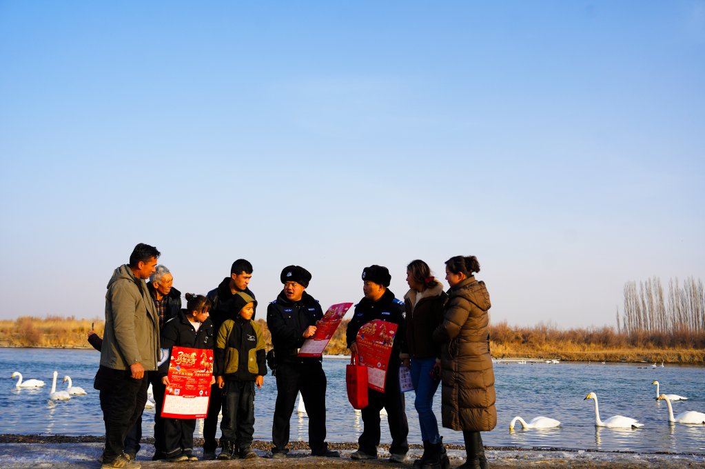 以“生態(tài)警長制”為抓手,派出所組織民輔警定期與“天鵝志愿服務(wù)隊”一同開展生態(tài)環(huán)境保護宣傳,引導(dǎo)游客文明觀鳥、遠離危險水域。