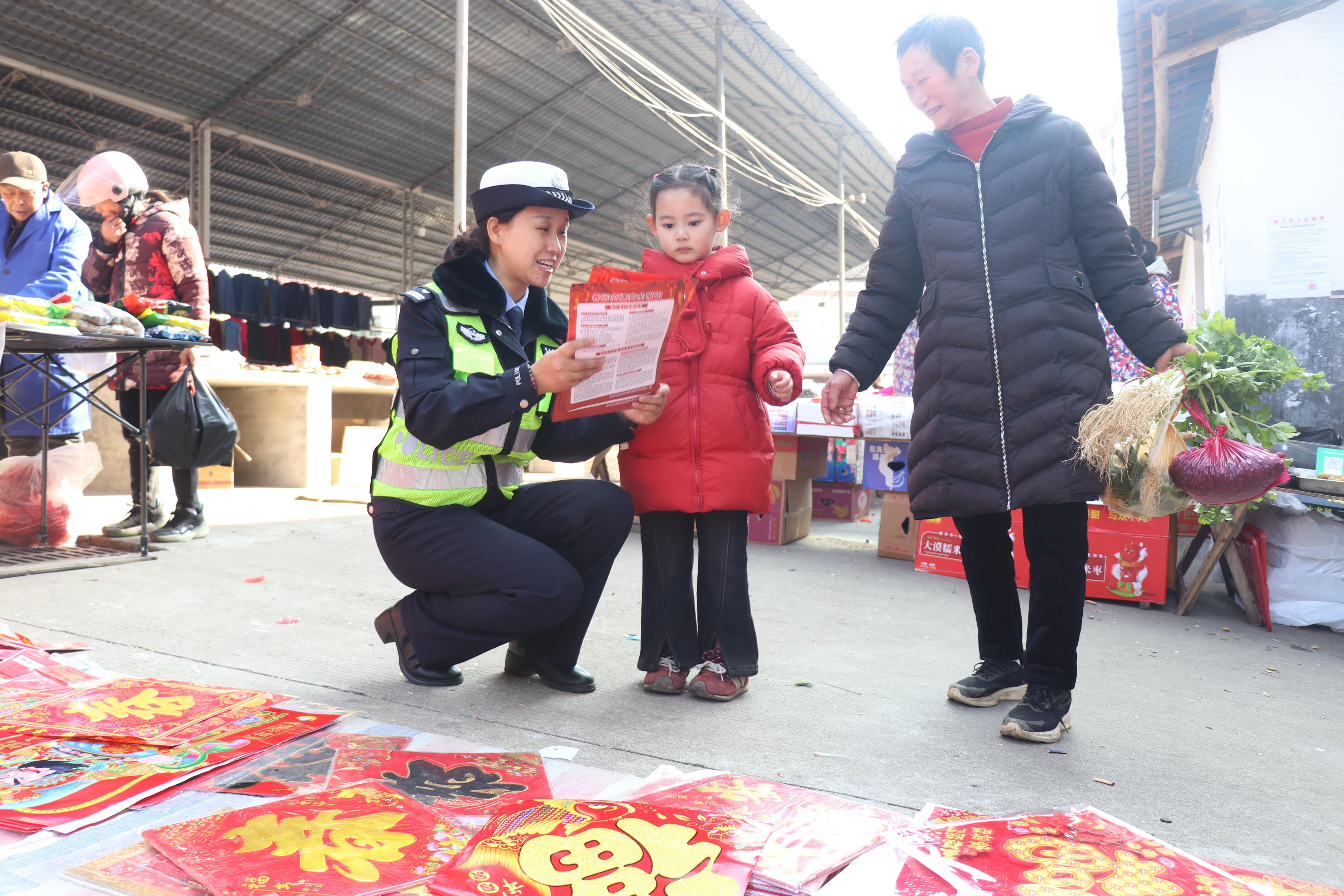 圖為2月3日,民警來(lái)到太原鄉(xiāng)太原村集市向過(guò)往群眾講解交通安全知識(shí)。