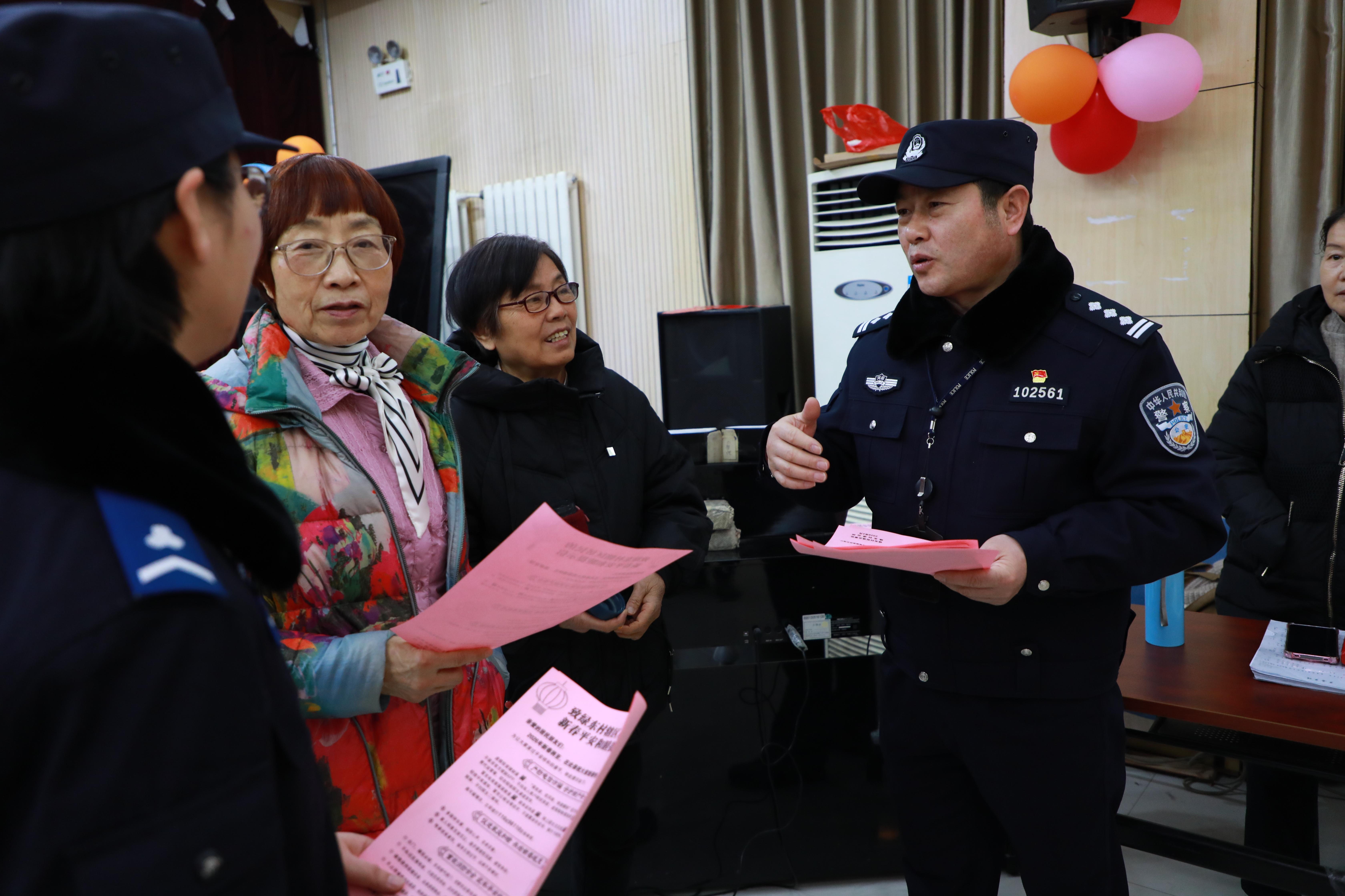 圖為2月9日,中原分局綠東村派出所民警向社區(qū)居民宣傳老年人防詐騙知識。