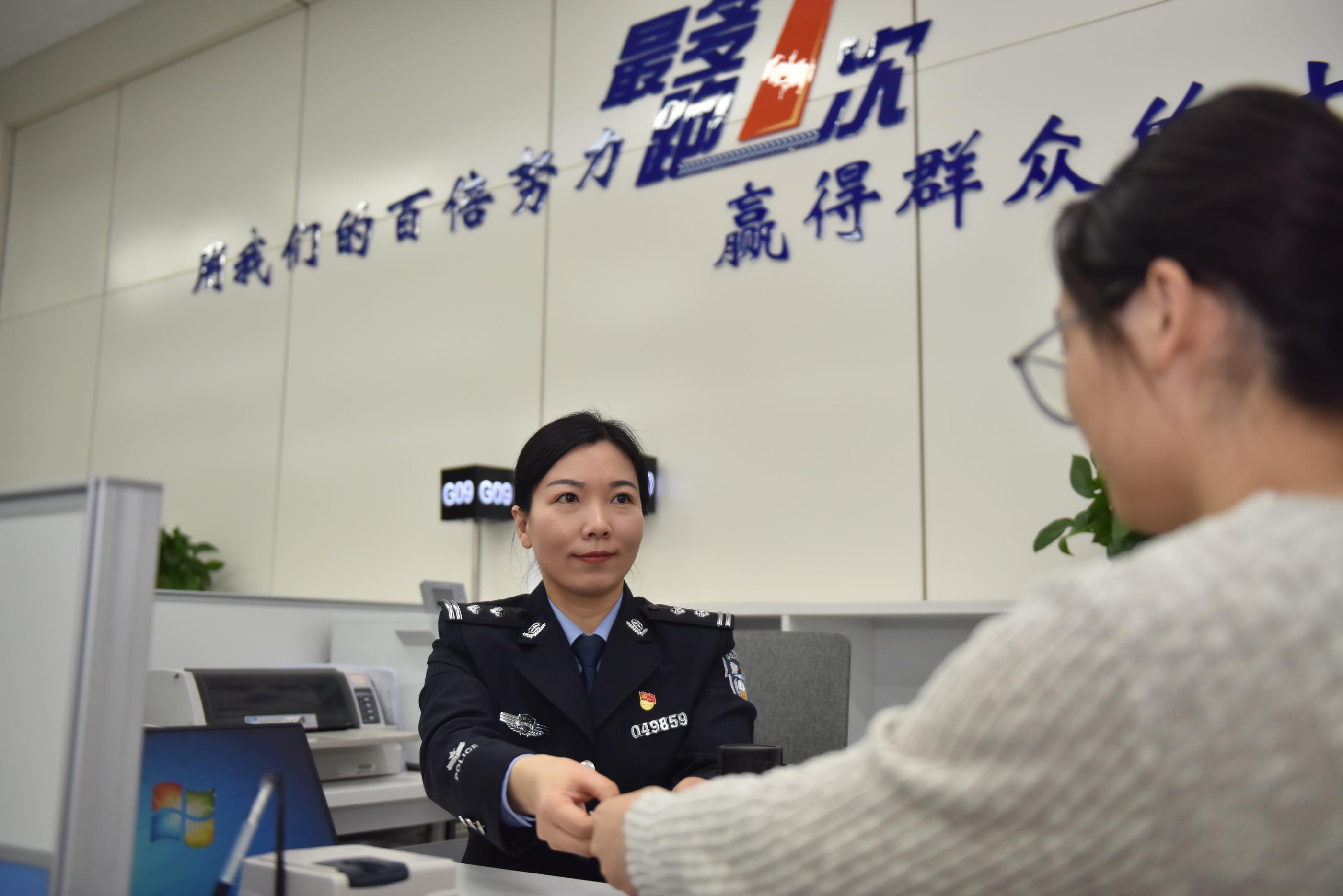 “大姐,您的證件辦好了,有問(wèn)題可隨時(shí)咨詢,現(xiàn)在我們已經(jīng)開(kāi)通掌上辦功能,歡迎體驗(yàn)?!苯?,在浙江省海鹽縣政務(wù)服務(wù)中心公安窗口,一位笑容可掬、沉穩(wěn)干練的女警正在熱心接待辦事群眾。她,就是海鹽縣公安局政務(wù)服務(wù)工作科科長(zhǎng)何雪紅。