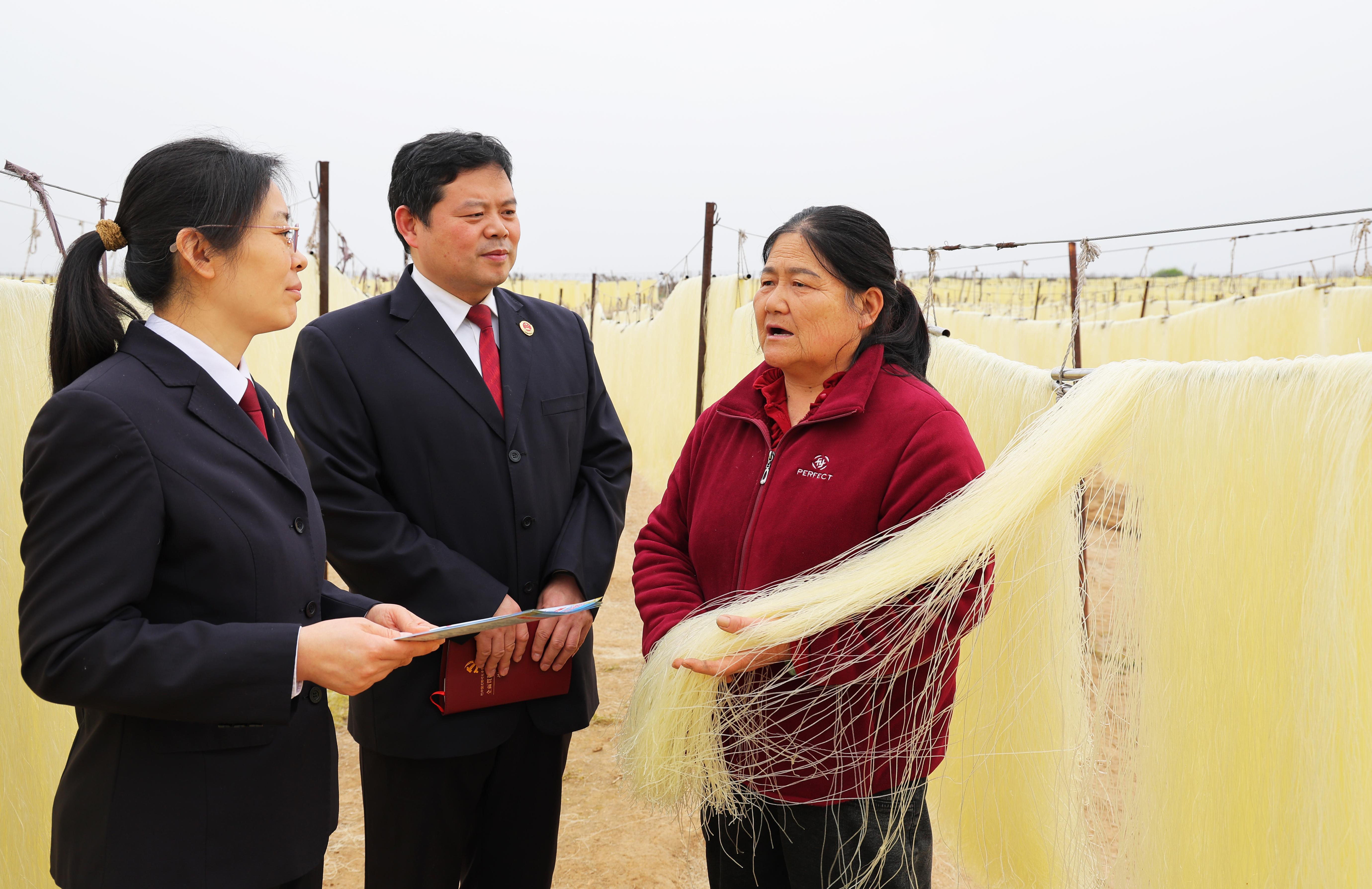 圖為3月23日,該院干警深入紅薯粉條生產(chǎn)廠家,征求對(duì)農(nóng)特產(chǎn)品的司法保護(hù)建議。