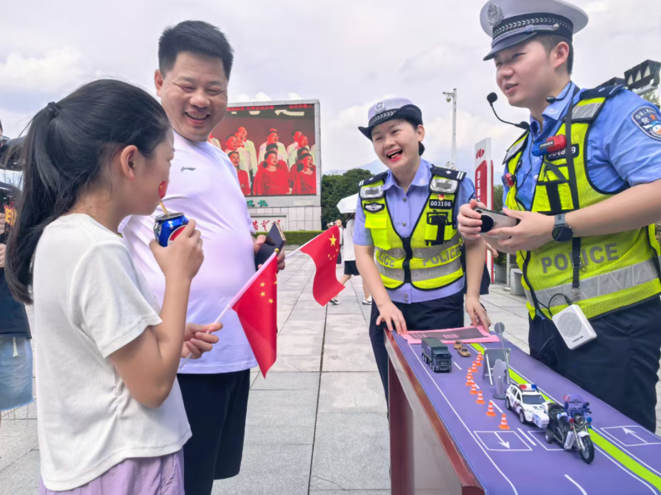 2025年國慶假期,來自湖南的游客王先生一家被“高速公路安全桌盤講解區(qū)”吸引,民警用沙盤模擬高速爆胎、發(fā)生事故等場景,手把手教他如何正確放置三角警示牌。“原本因堵車心情很煩躁,沒想到還能學(xué)到安全技能,井岡山的高速交警太有心了?!蓖跸壬B連稱贊。