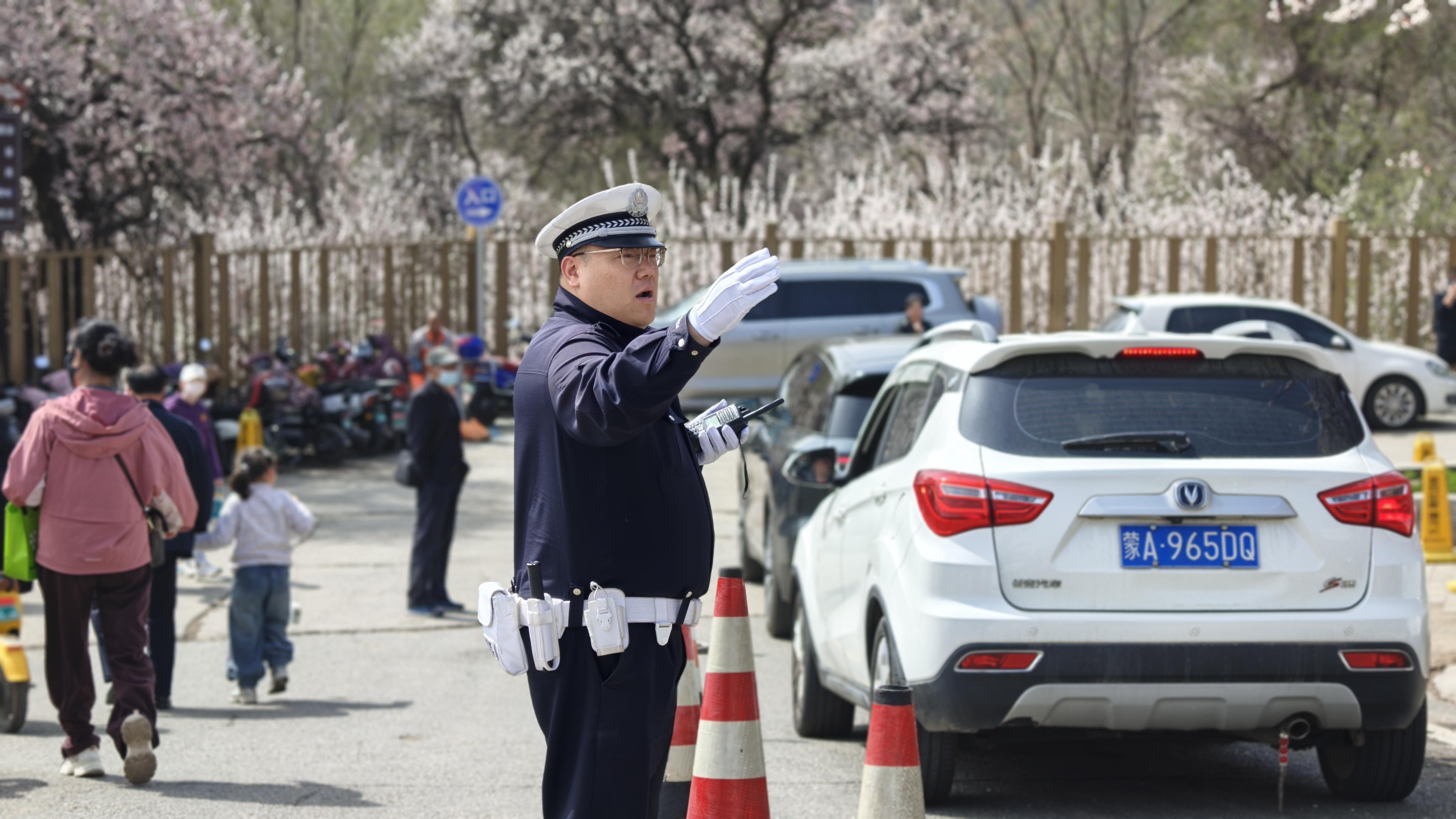 4月16日,內(nèi)蒙古自治區(qū)呼和浩特市回民區(qū)杏花節(jié)開幕。呼和浩特市公安局交通管理支隊(duì)回民區(qū)大隊(duì)民輔警全警動(dòng)員投入交通安保一線,全方位筑牢道路交通安全防線。