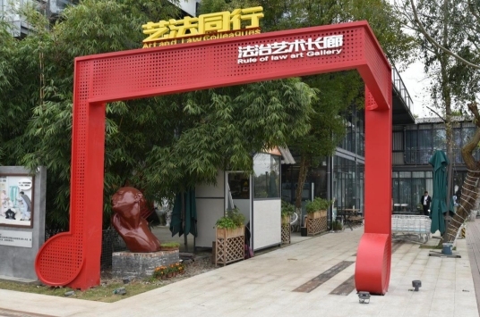 川音藝谷法治文化體驗基地位于新都區(qū)石板灘街道韓娥社區(qū),基地以做實普法體驗場景、做強法治藝創(chuàng)產(chǎn)業(yè)、做精藝創(chuàng)法律服務、做優(yōu)園區(qū)法治化營商環(huán)境為抓手,積極探索“守法普法”的新模式?;亻T頭采用二八音樂符號藝術變型設計,突出普法抓住“關鍵少數(shù)”。法治雕塑廣場采用經(jīng)典法治故事雕刻作品,展現(xiàn)民法典基本原則理念。法治長廊采用法治藝術場景引導+典型案例釋法拓展+交互教育沉浸體驗的方式展現(xiàn)熊博士的法治人生。同時,使用四川獨有物種熊貓,創(chuàng)作形象的熊貓法字LOGO;借鑒新都漢朝說唱俑,創(chuàng)作說法熊貓吉祥物。與川音藝谷項目的運營方建立合作機制,舉辦新都區(qū)法治文化作品展覽、評選活動,鼓勵創(chuàng)作具有法治內(nèi)涵的雕塑、書法、攝影、音樂等藝術產(chǎn)品作品。此外,基地布局川音藝谷法律之家,發(fā)揮社區(qū)法律顧問服務團隊的作用,積極為項目建設提供合同合法性審查等法律服務,為川音藝谷文創(chuàng)園建設保駕護航。基地還設立川音藝谷知識產(chǎn)權(quán)保護工作站,融合多部門的職能作用,營造良好的國際營商環(huán)境,增強藝創(chuàng)產(chǎn)業(yè)創(chuàng)作創(chuàng)新的活力。