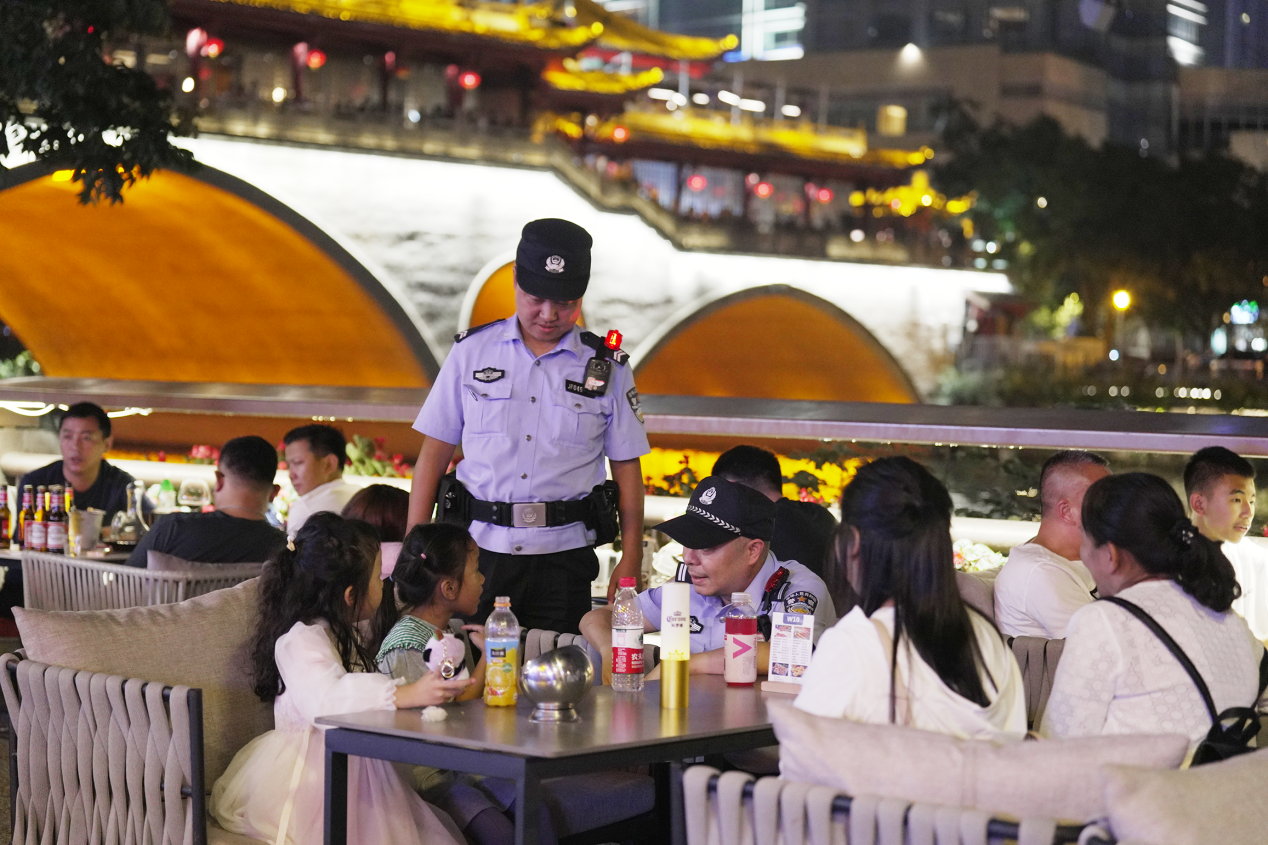 “無(wú)論是外地游客還是本地居民,很多人都喜歡在望江河邊吹吹風(fēng)、泡泡吧?!苯z管路的“管段”民警段軍2009年從交警分局調(diào)到望江路派出所后,15年來(lái)一直負(fù)責(zé)老馬路社區(qū)的相關(guān)警務(wù)工作。段軍說(shuō),每逢節(jié)假日來(lái)絲管路放松的人就特別多,所上也會(huì)投入更多精力在“酒吧街”和臨近的望江公園、川大博物館等景點(diǎn)及區(qū)域。從節(jié)前的消防安全檢查、治安隱患排查,到節(jié)日期間的巡邏防控、安全守護(hù),大家一絲不茍、全力堅(jiān)守。