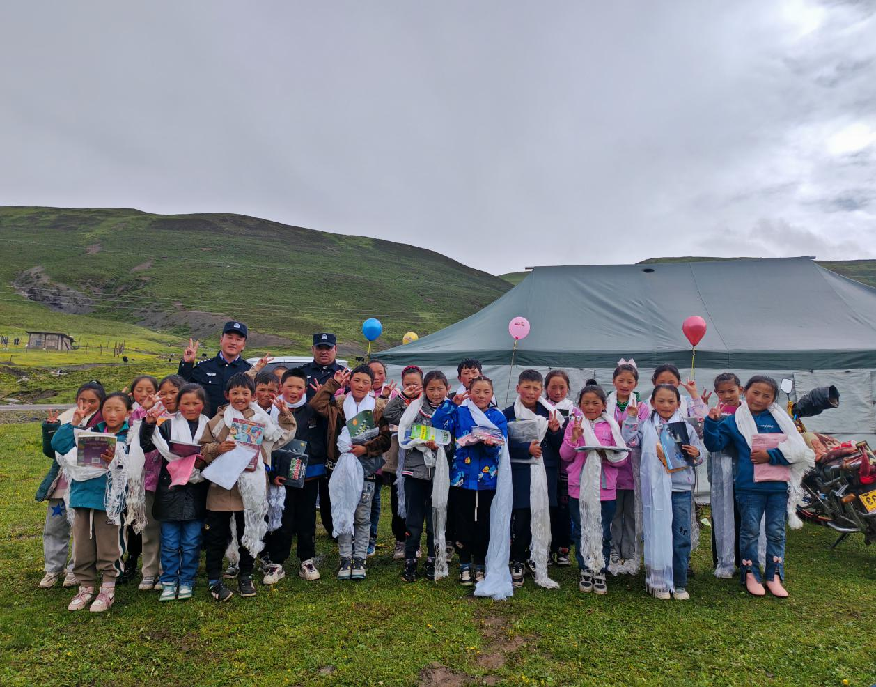 據(jù)拉巴介紹,德格縣岳巴鄉(xiāng)阿木拉小學(xué)是一個村小,孩子們讀到三年級以后就要轉(zhuǎn)到馬尼干戈中心校就讀。這一屆的27名學(xué)生剛完成期末考試,老師們想組織孩子們以“耍壩子”的形式慶祝在阿木拉小學(xué)生涯的“畢業(yè)”典禮。從小在大山里長大的拉巴聞訊后,主動表示參加當(dāng)日活動,并掏錢為孩子們精心準(zhǔn)備了短袖、水果等禮物,并還帶去了愛心人士捐贈的書籍和衣服,和同事一起驅(qū)車60多公里趕到阿木拉夏季牧場,送去一份警察叔叔的祝福,見證孩子們不一樣的“畢業(yè)”典禮。