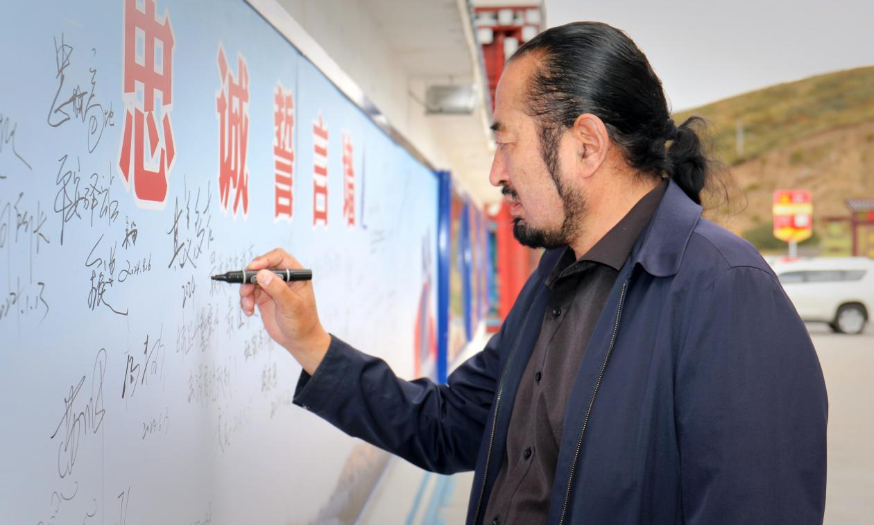 “缺少的是氧氣,擁有的是忠誠(chéng)!”有感于忠誠(chéng)誓言的感召,正值中秋佳節(jié)之際,剛和劉鵬一道參加學(xué)習(xí)貫徹黨的二十屆三中全會(huì)精神勞模工匠宣講活動(dòng)回來(lái)的“時(shí)代楷模”其美多吉,途徑洛戈梁子警務(wù)站時(shí),專門(mén)打卡致敬忠誠(chéng)高地,并在忠誠(chéng)誓言墻上留言,帶來(lái)了中秋的祝福。
