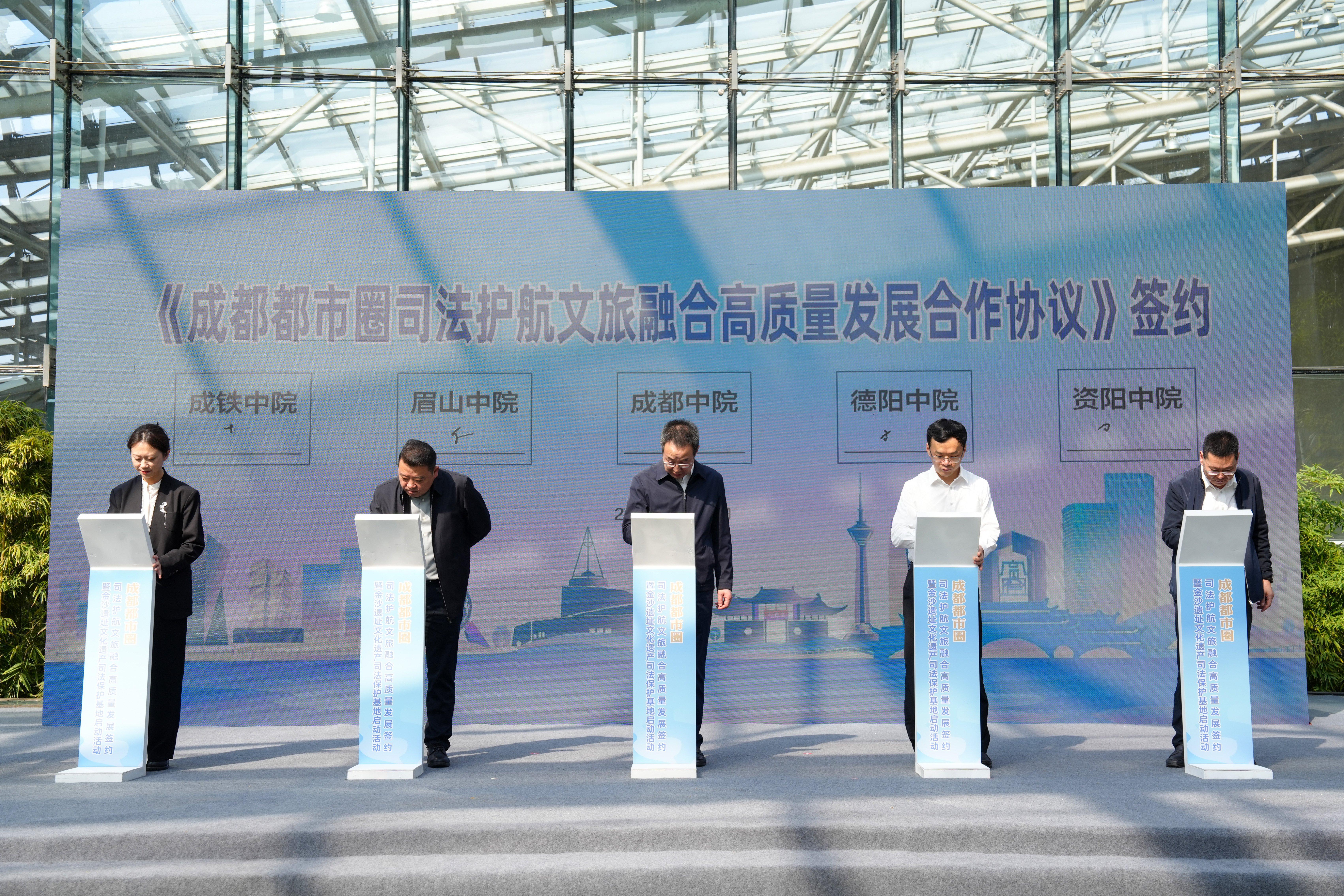 據(jù)了解,2020年4月,成都、德陽、眉山、資陽中院共同簽署了《為成德眉資同城化發(fā)展提供高質(zhì)量司法服務(wù)保障的合作框架協(xié)議》,開啟了攜手服務(wù)同城化發(fā)展的司法實(shí)踐。此次成德眉資及成鐵法院再次深化合作,進(jìn)一步聚焦成都都市圈文旅融合高質(zhì)量發(fā)展,在共同提升司法服務(wù)供給水平、一體推進(jìn)跨域生態(tài)環(huán)境資源司法保護(hù)、服務(wù)本土文化資源恢復(fù)保護(hù)和融合發(fā)展、合力維護(hù)都市圈文旅品牌和市場(chǎng)環(huán)境等四個(gè)方面將通力合作,謀劃了涉文旅糾紛多元化解、加強(qiáng)知識(shí)產(chǎn)權(quán)保護(hù)、維護(hù)旅游者合法權(quán)益等十項(xiàng)務(wù)實(shí)舉措,更大力度提升文旅融合發(fā)展方面的司法服務(wù)保障實(shí)效。