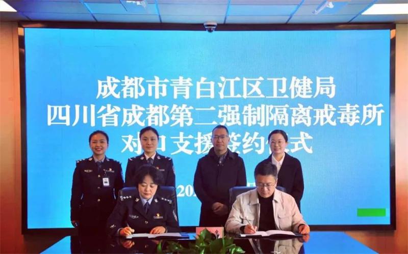 為進一步提高場所戒毒醫(yī)療工作管理專業(yè)化、規(guī)范化水平,提升戒毒醫(yī)療隊伍整體業(yè)務(wù)素質(zhì),近日,四川省成都第二強制隔離戒毒所與成都市青白江區(qū)衛(wèi)生健康局簽訂對口支援合作協(xié)議。成都市青白江區(qū)衛(wèi)生健康局黨組書記、局長李顯榮,四川省成都第二強制戒毒隔離所黨委副書記、政委羅濰等出席簽約儀式?!?/p>