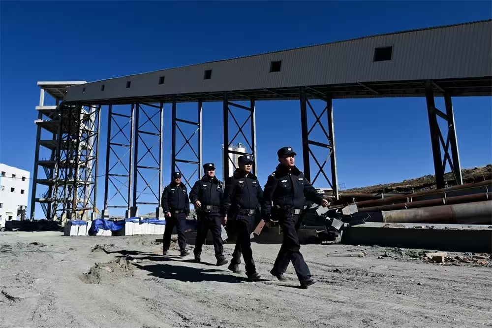 作為駐勤的第一批警力,土登郎加見證了警務(wù)站建立前后礦區(qū)的變化。在警務(wù)站建立之前,施工建設(shè)工地盜竊現(xiàn)象猖獗,建筑材料、施工工具被人順手牽羊偷走是常事。挖掘機(jī)需要使用的機(jī)油被盜竊者全部倒在地上,因?yàn)樗麄冎恍枰b油的鐵桶,導(dǎo)致挖掘機(jī)無法工作。甚至有時候,就連企業(yè)廚房里燉著的土雞都被人連鍋端走。這般偷盜行為,讓礦山企業(yè)苦不堪言。