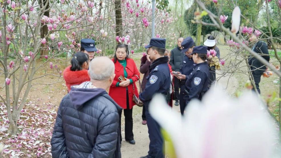 三月春風(fēng)暖,四川眉山東坡文創(chuàng)園內(nèi)游人如織。粉白花瓣紛飛間,一抹抹藏藍(lán)身影穿梭其中。春風(fēng)十里,他們用腳步丈量平安,用笑容傳遞溫暖,讓這場(chǎng)春日之約更添安心與溫情。