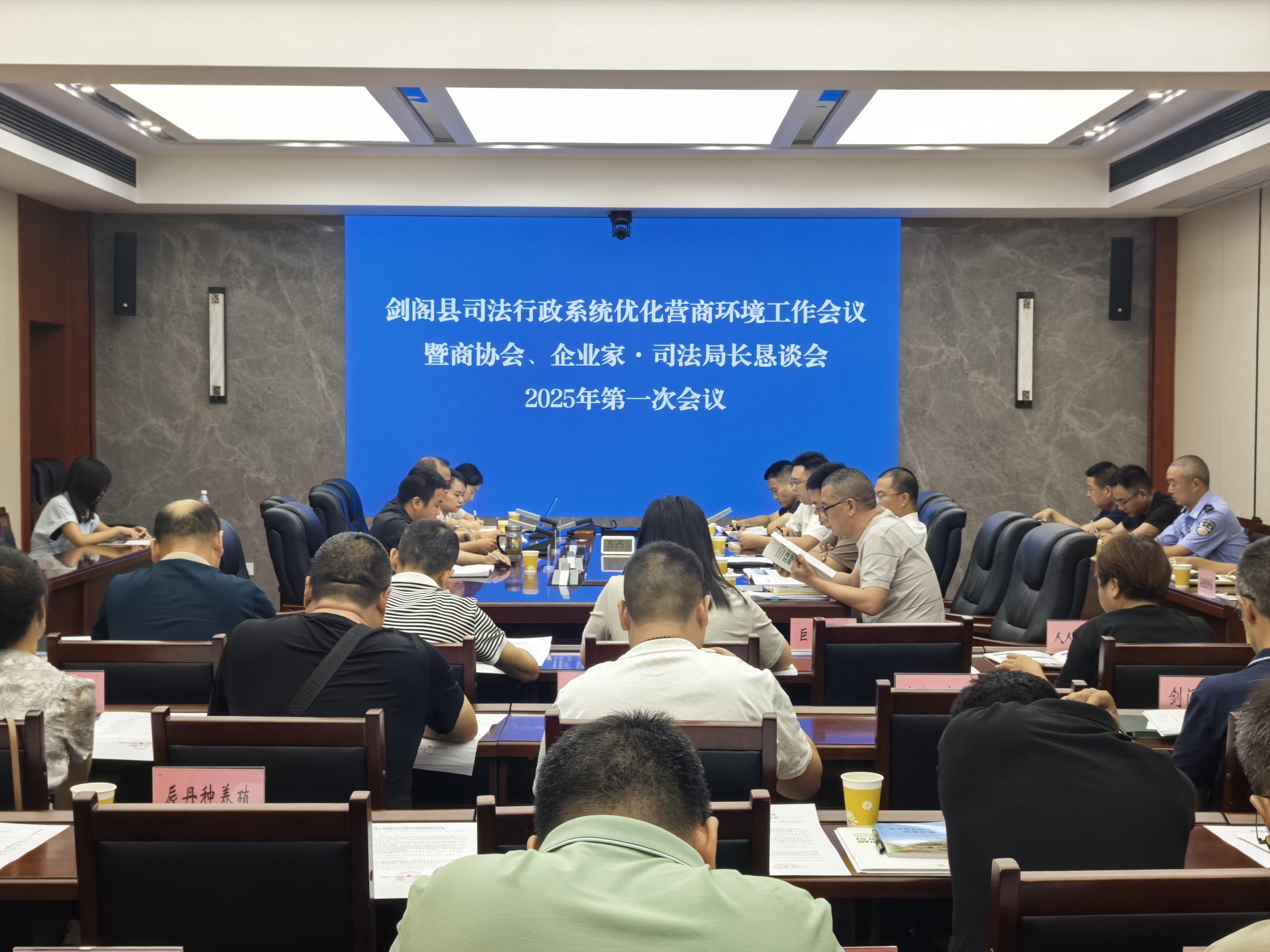 近日,四川省廣元市劍閣縣司法局聯(lián)合縣營商辦召開“劍閣縣司法行政系統(tǒng)優(yōu)化營商環(huán)境暨企業(yè)家·司法局長懇談會”。30余名商協(xié)會、企業(yè)家代表,縣法院、縣檢察院、縣公安局、縣農(nóng)業(yè)農(nóng)村局、縣經(jīng)信科局(劍閣經(jīng)開區(qū))、縣商合局、縣交通運輸局、縣工商聯(lián)、縣營商辦等部門相關領導參加會議。