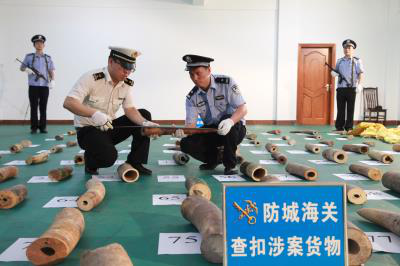 據(jù)介紹,南寧海關(guān)將打擊象牙等瀕危物種走私列為重中之重,深入開展“國門利劍2019”“藍(lán)天2019”系列聯(lián)合專項行動,圍繞象牙等瀕危物種走私重點地區(qū)、重點區(qū)域、重點渠道,緊盯購、運、儲、銷全鏈條,確保專項行動快、打得準(zhǔn),堅決遏制走私勢頭。今年以來,連續(xù)查獲發(fā)現(xiàn)涉嫌走私象牙制品等案件52起,查獲象牙制品總量達(dá)12.35千克。其中梧州海關(guān)快件監(jiān)管中心連續(xù)查獲發(fā)現(xiàn)涉嫌走私象牙制品案件50起,查獲象牙刀叉、扇子等制品一批,凈重11.71千克,是全國海關(guān)今年以來在快件渠道查獲數(shù)以及重量最大的涉嫌走私象牙制品系列案件。