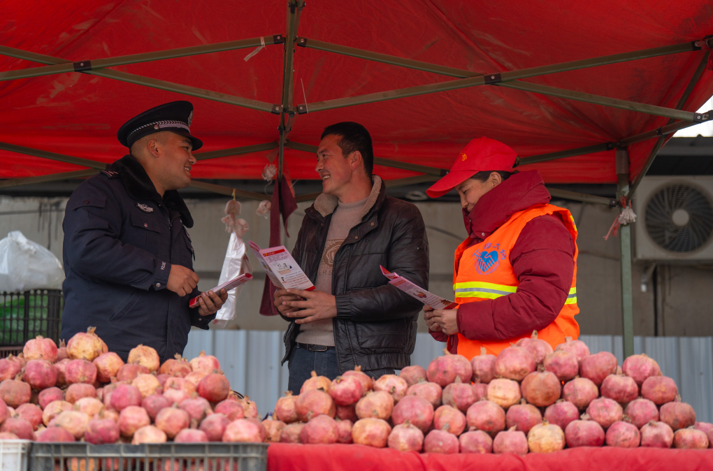 12月12日,新疆維吾爾自治區(qū)葉城縣伯西熱克鎮(zhèn)派出所以“石榴警務(wù)”為抓手,踐行新時代“楓橋經(jīng)驗”,緊扣優(yōu)化營商環(huán)境、助力鄉(xiāng)村振興目標,組織“石榴大媽”“石榴義警”隊伍,深入集市、石榴種植合作社、小微企業(yè)等重點區(qū)域,開展巡邏防控、隱患排查、普法宣傳、糾紛調(diào)處“一站式”服務(wù)。