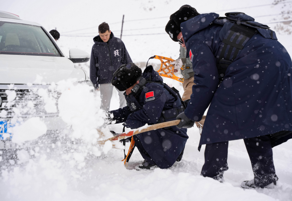 在極具探險(xiǎn)魅力的塔莎古道,2025年1月5日的一場大雪阻斷了過往旅客的通途,正在轄區(qū)巡邏的民警劉濤知曉情況后第一時間趕赴現(xiàn)場開展救援行動。他一邊引導(dǎo)過往車輛減速慢行,維護(hù)交通秩序,一邊使用鐵鍬和繩索等救援工具施救,持續(xù)奮戰(zhàn)7小時,成功救出被困車輛60余輛,群眾200余人。