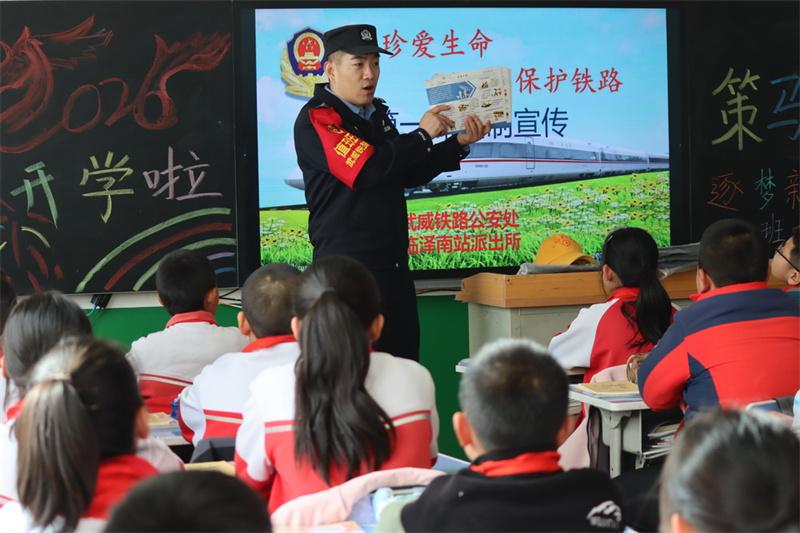 為切實(shí)筑牢鐵路沿線校園安全防線,提升中小學(xué)生鐵路安全意識(shí)與自我防護(hù)能力,近日,甘肅蘭州鐵路公安局武威公安處組織管內(nèi)各派出所民警深入轄區(qū)20余所中小學(xué),開(kāi)展“法治安全進(jìn)校園”主題宣傳活動(dòng),以情景體驗(yàn)、趣味互動(dòng)、家校聯(lián)動(dòng)等多元舉措,將安全知識(shí)送進(jìn)課堂、傳遞到家庭,為青少年健康成長(zhǎng)保駕護(hù)航。