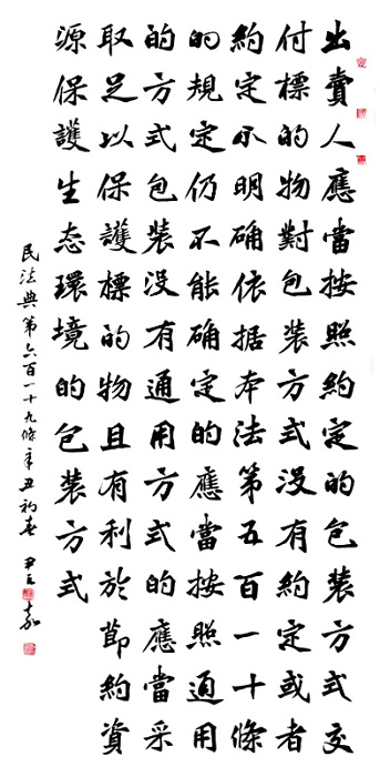 民法典第六百一十九條 出賣人應(yīng)當(dāng)按照約定的包裝方式交付標(biāo)的物。對包裝方式?jīng)]有約定或者約定不明確,依據(jù)本法第五百一十條的規(guī)定仍不能確定的,應(yīng)當(dāng)按照通用的方式包裝;沒有通用方式的,應(yīng)當(dāng)采取足以保護標(biāo)的物且有利于節(jié)約資源、保護生態(tài)環(huán)境的包裝方式。